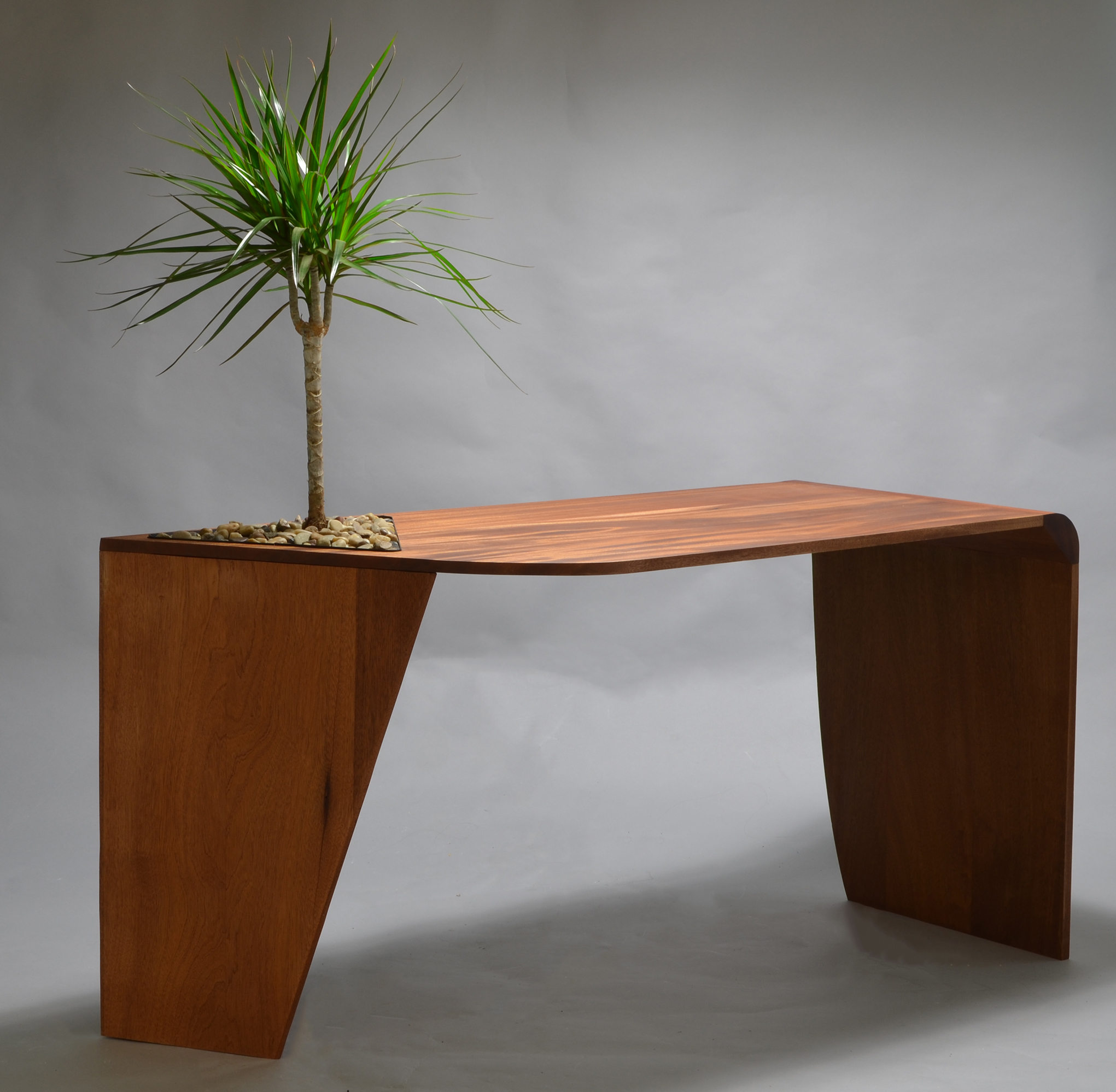 A desk made from Utile, with an integrated planting area for either bonsai trees or a rock garden